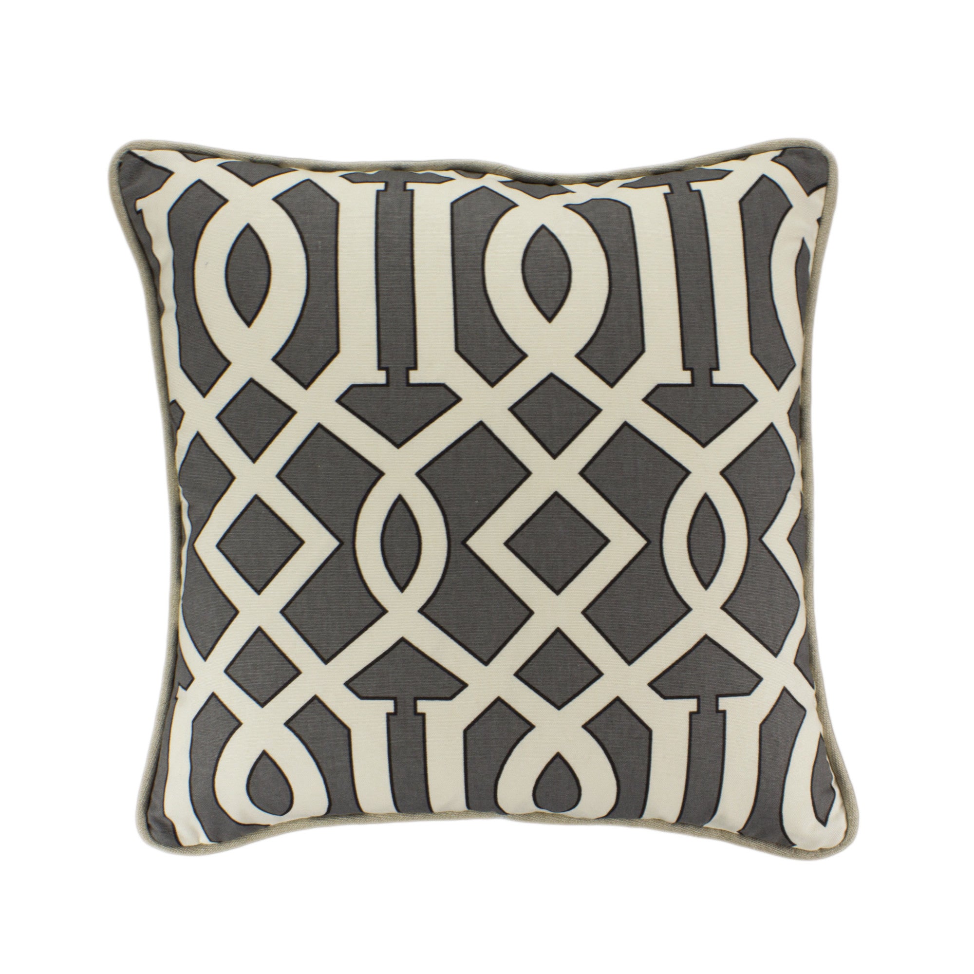 This graphite and ivory, modern lattice print, reminiscent of Kelly Wrestler's famous Imperial Trellis pattern is screen printed on heavy weight cotton duck fabric. The pillow, backed and piped in heavy weight linen is constructed to withstand moderate tension and abrasion – therefore works in rooms that require durability. Given the mix of colours, this pillow is perfectly suited to work wonderfully in both warm and cool neutral settings.Feather Insert